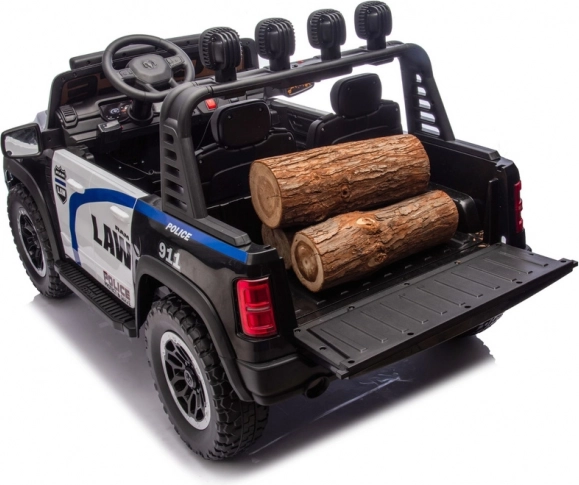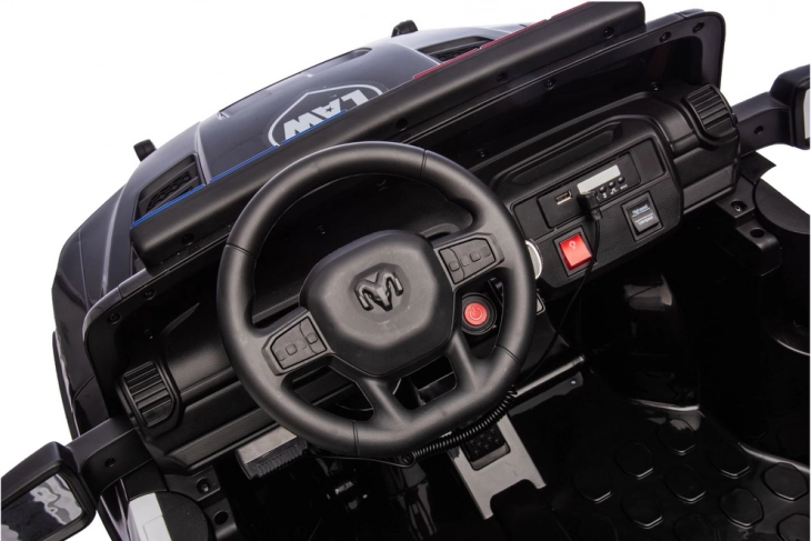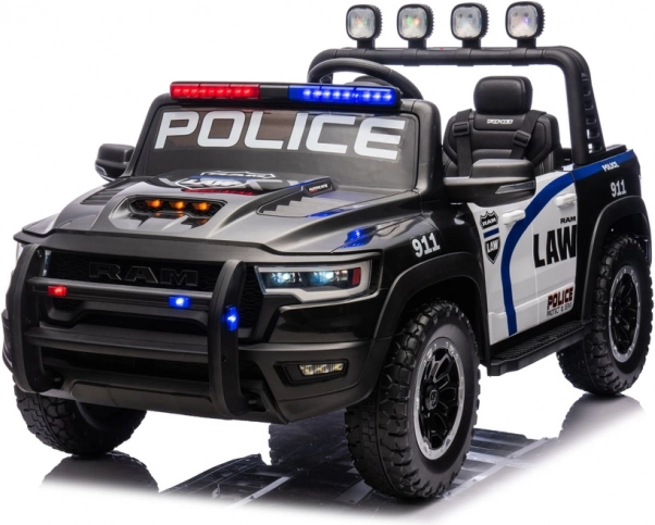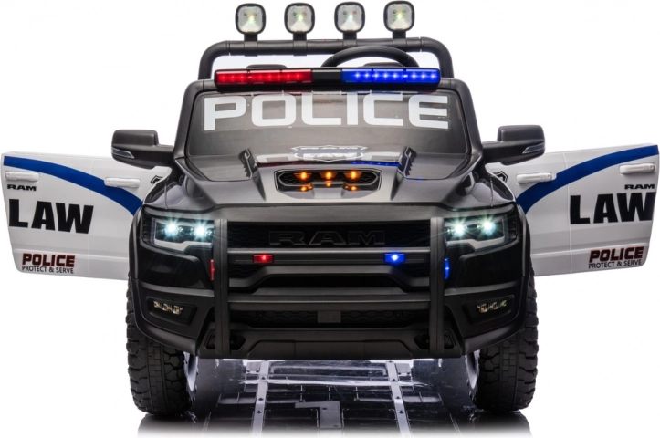Otroški električni avtomobilček v slogu policijskega pick-upa RAM prinaša realistično vožnjo z učinkovitimi lučmi, trpežnimi kolesi in dvema sedežema. Odličen za male policiste, ki želijo doživeti akcijsko zabavo na vrtu ali dvorišču. Zahvaljujoč robustni zasnovi, dovršeni notranjosti in varnostnim elementom ponuja odlično razmerje med zabavo in varnostjo z avtentičnim policijskim videzom ter svetlobnimi učinki.