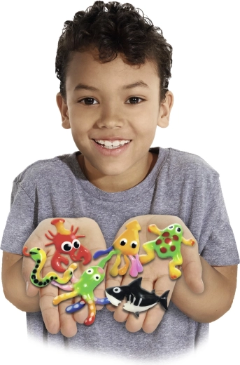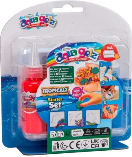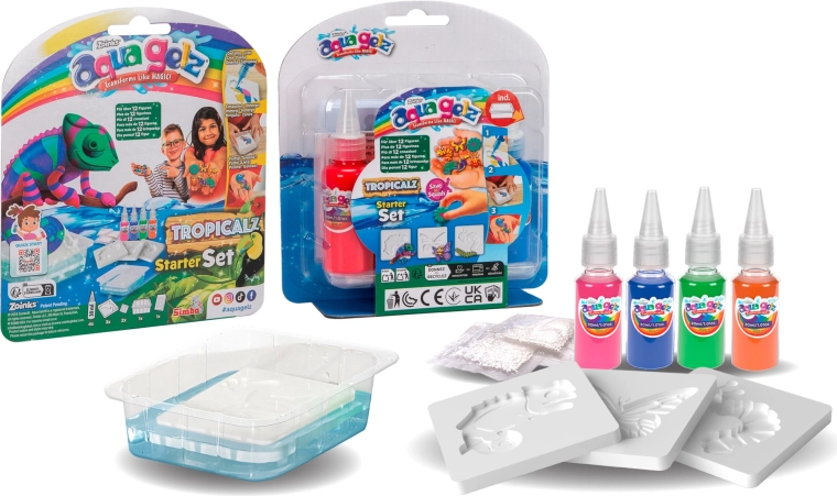 Odkrijte igrivo ustvarjanje z AQUA GELZ – zabavnim kompletom, s katerim otroci zlahka ustvarjajo barvite gelaste figurice. Zmešajte poseben prašek z vodo, izberite kalup, ga napolnite z barvnimi geli in na kratko potopite. V trenutku se ploščata podoba spremeni v mehko 3D figurico, ki sama zdrsne iz kalupa.