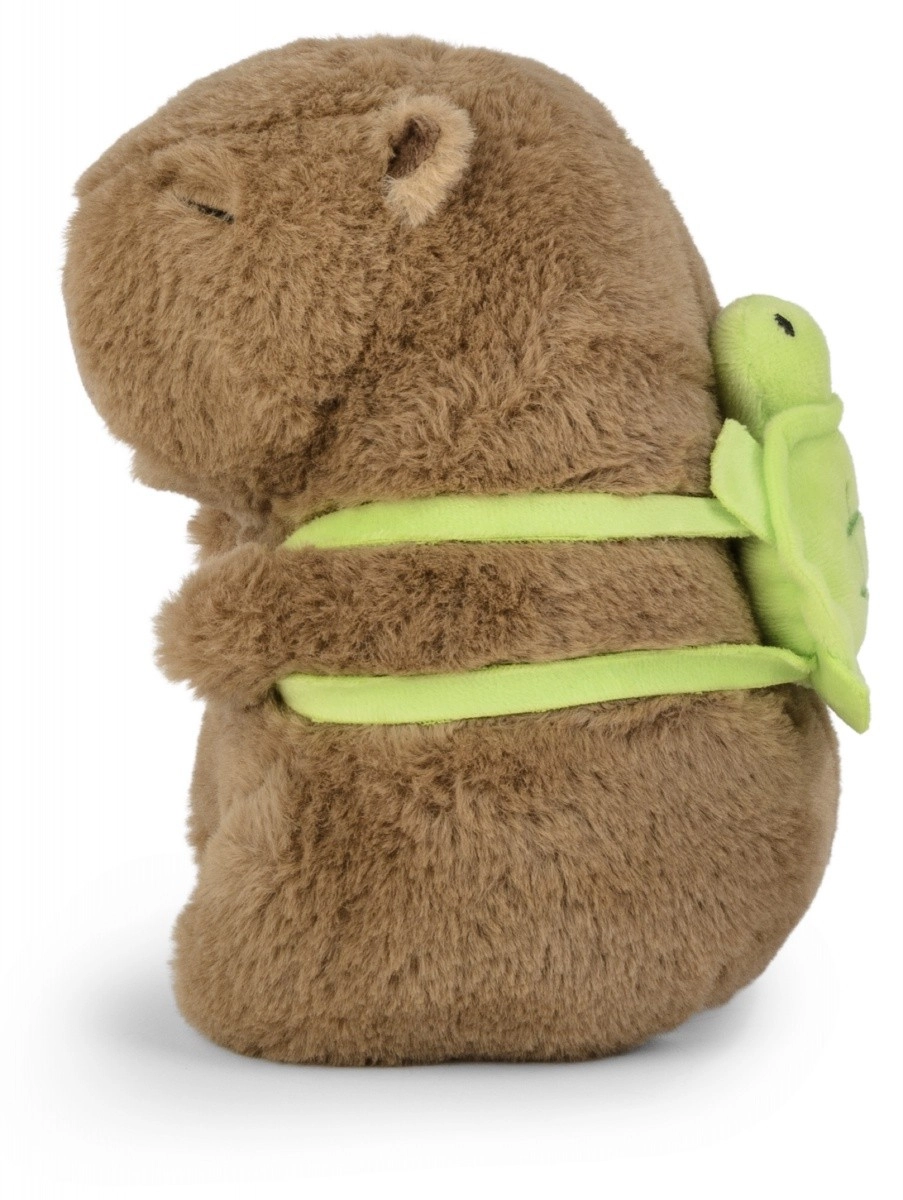 Ta plišasta kapibara združuje mehak, puhast otip z domiselnim nahrbtnikom v obliki želvice, ki je trdno pritrjen in ne ovira crkljanja. Zaradi kompaktne višine 21 cm se odlično prilega otroški roki, postelji in prtljagi na poti.