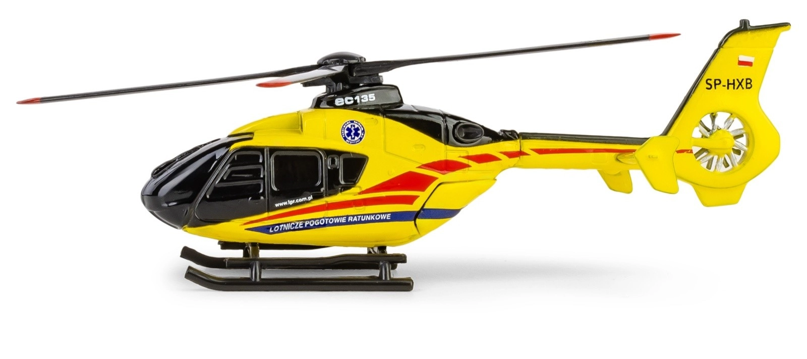 Ta licencirani model zvesto prikazuje helikopter AIRBUS EC135, ki ga uporablja letalska reševalna služba. Natančen potisk in avtentične oznake ustrezajo dejanski barvni shemi, zaradi česar model odlično izstopa v zbirki ali na pisalni mizi.