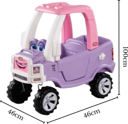 Rožnato‑vijoličen poganjalni avto Little Tikes Cozy Coupe Truck ponuja otrokom, starim od 18 mesecev do 5 let, varno, aktivno in ustvarjalno zabavo doma in na prostem. Ponuja način foot‑to‑floor, odstranljivo dno, možnost starševskega potiskanja, odpirajoča se vrata, hupo in prostoren “prtljažnik” za igrače.