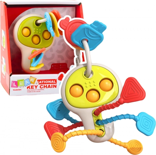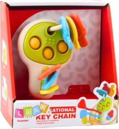 Varna, kakovostna plastična izvedba je prijazna do otrok in odporna na vsakodnevno uporabo. Igra s ključki pomaga razvijati prijem, koordinacijo roka–oko ter prebuja naravno radovednost in ustvarjalnost.