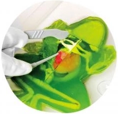 Ta izobraževalni komplet na igriv način predstavlja osnove anatomije. V notranjosti je žaba velikosti 16 cm z realistično oblikovanimi organi in okostjem, ki so prekriti z zeleno sluzjo. Posamezne dele lahko preprosto odstranite, raziščete in znova vstavite.