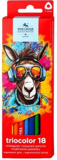 Odkrijte kakovostne trikotne barvice KOH-I-NOOR Triocolor v kompletu 18 barv, preverjene s strani otrok in šol. Ponašajo se z odporno, nelomljivo mino, ergonomskim oprijemom za udobno risanje in bogato barvno paleto za ustvarjalnost.