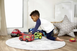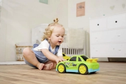 Gladka kolesa in mehanizem prostega teka omogočata otrokom, da avtomobilčke zlahka vozijo po tleh in preprogi – preprosto potisni in pelji.