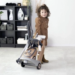 Ta stilski čistilni voziček z licenco ROWENTA spremeni domače čiščenje v priljubljeno igro. Otroci lahko z realističnim sesalnikom s pravim zvokom posnemajo odrasle, medtem ko ergonomsko oblikovana orodja natančno ustrezajo otroškim rokam. Lahka in enostavno vodljiva zasnova omogoča varno upravljanje tudi mlajšim otrokom.