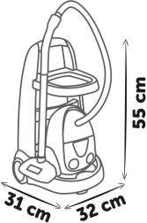 - Realistična igra zahvaljujoč zvokom sesalnika in funkcionalni razporeditvi orodij.