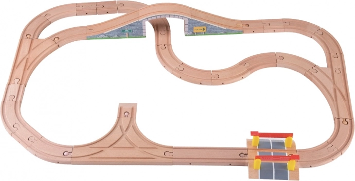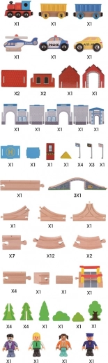 Z univerzalnimi lesenimi spoji je set združljiv z večino običajnih lesenih vlakovnih prog. Trdna izvedba iz lesa, dopolnjena s kovinskimi elementi, ter magnetno spajanje vagonov omogočata enostavno upravljanje tudi za mlajše otroke. Set je pripravljen za takojšnjo igro – le sestavite tirnice, razporedite dodatke in se podajte na pot.