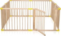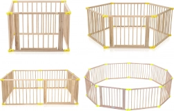 Ta prostorna lesena ograda XXL je idealna rešitev za starše, ki želijo otroku ustvariti stabilno in varno okolje doma ali na obisku. Osem trdnih panelov z vzdržljivimi plastičnimi spojkami lahko preprosto sestavite v kvadrat, pravokotnik, šestkotnik ali osemkotnik – natančno glede na prostorske možnosti in trenutne potrebe.