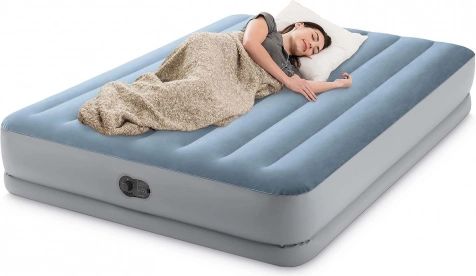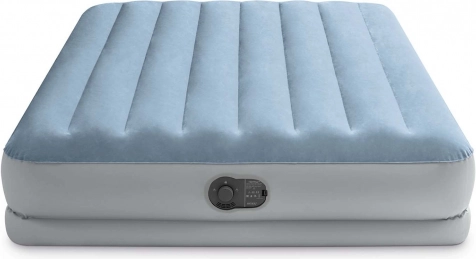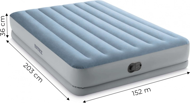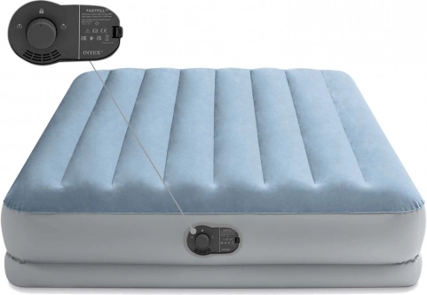 Praktična napihljiva postelja INTEX je idealna kot začasno ležišče za goste, za vikend hišo ali potovanja. Povišana konstrukcija olajša uleganje in vstajanje, medtem ko je velur površina prijetna na dotik in preprečuje drsenje rjuhe. Integrirana električna črpalka pripravi ležišče v približno 3 minutah in prav tako hitro omogoči izpihovanje.