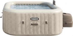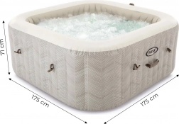 Napihljiva masažna kad INTEX spremeni vrt, teraso ali notranjost v zasebne terme. Prostorna notranjost za 4 osebe in eleganten bež dizajn se odlično podata sodobnemu okolju. 140 mehurčkastih šob sprosti mišično napetost in podpira regeneracijo po napornem dnevu, medtem ko ogrevanje do 40 °C zagotavlja popolno udobje v vsakem letnem času.