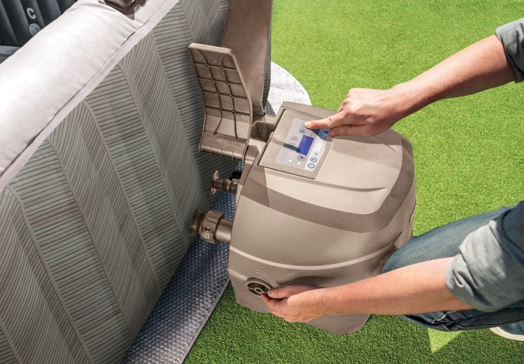 Vse potrebno v paketu: termični pokrov, filtrirna črpalka z 2 filtra S2, podloga, cev za napihovanje, testni lističi in praktična transportna torba. Hitra namestitev in preprosto prezimovanje naredita to masažno kad odlično izbiro za vsakodnevno sprostitev.