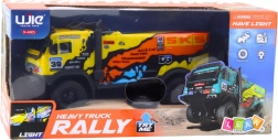 Ta stilski RC tovornjak izstopa z barvitim športnim dizajnom, intuitivnim upravljanjem in vzdržljivo izdelavo. Daljinski upravljalnik omogoča gladko vožnjo naprej in nazaj ter spreminjanje smeri, medtem ko brencelj/hupa s kabli doda zabavi avtentične zvočne učinke.
