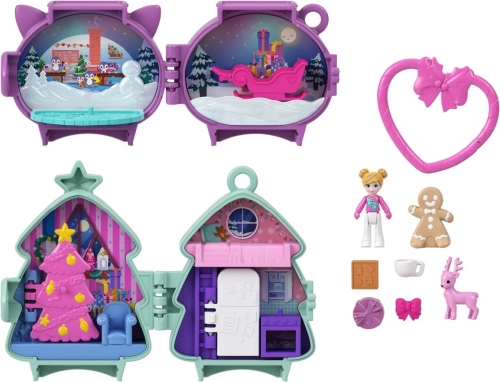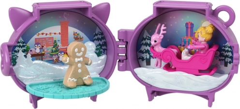 Dva ljubka kompaktna seta POLLY POCKET v obliki severnega jelena in božičnega drevesca prinašata dvojno dozo zabave na poti. V notranjosti čakata zimsko kraljestvo in prijeten domek, mikro punčka, živalica in tematski dodatki za neskončne praznične zgodbe. Seta lahko zlagate v eno zimsko sceno, s pomočjo sponke pa ju preprosto pripnete na nahrbtnik. Odlično darilo za otroke od 4 let.