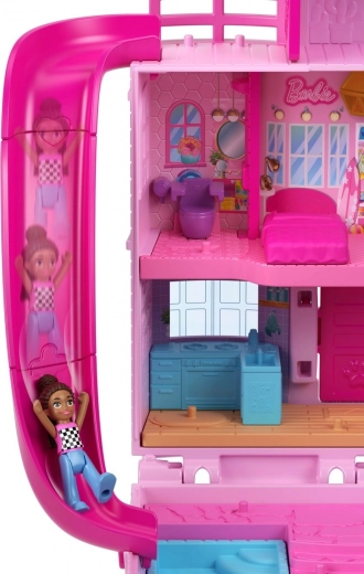 Kompaktna hišica Polly Pocket Barbie Dreamhouse združuje dve priljubljeni znamki v enem rožnatem setu v mikro merilu. Otroci lahko raziskujejo 3 nadstropja kultne hišice, zunanjo igralno cono z bazenom in množico pametnih rešitev za ustvarjalno igro.