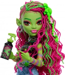 Odkrijte rastlinsko zvezdo sveta MONSTER HIGH. Venus McFlytrap zasije v barvitem outfitu s tiskom, džins kratkimi hlačami in platform čevlji z motivom lian. Zahvaljujoč gibljivim okončinam je punčko preprosto pozirati in ustvarjati fantazijske prizore, ki jih otroci obožujejo.