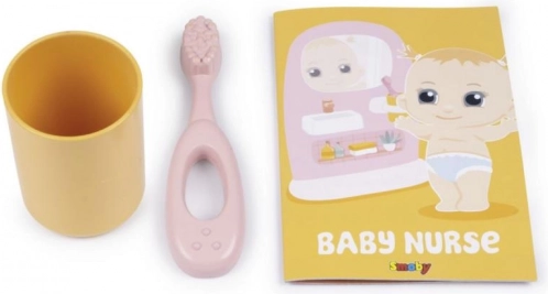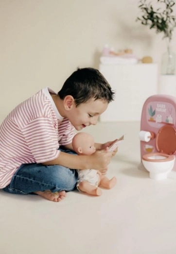 Kopalni komplet za punčke Baby Nurse s straniščem, umivalnikom in dodatki. Primeren za punčke do 42 cm. Izdelano iz min. 75 % recikliranega materiala.