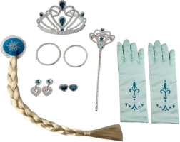 V trenutku se prelevite v svojo najljubšo princesko s tem očarljivim kompletom nakita s pritrjenim dolgim kitom. Idealno za kostume, pust in igro doma. Sijoč nakit, dolg spleten kit in preprosto nameščanje bodo navdušili vsako malo modnico.
