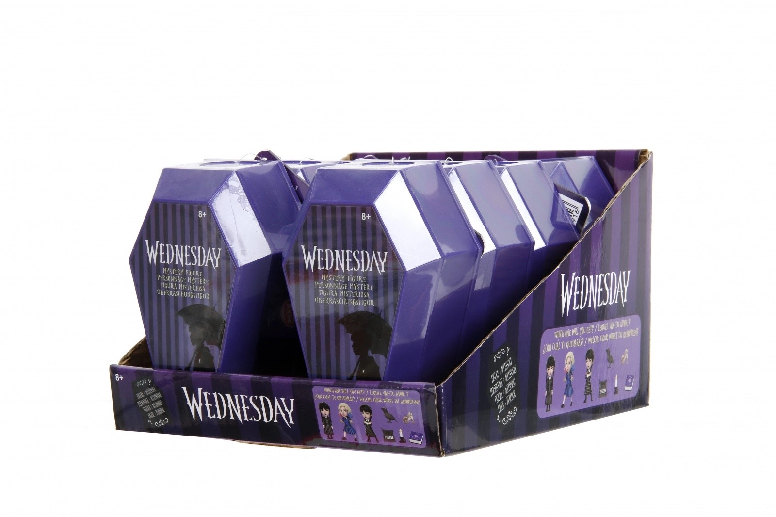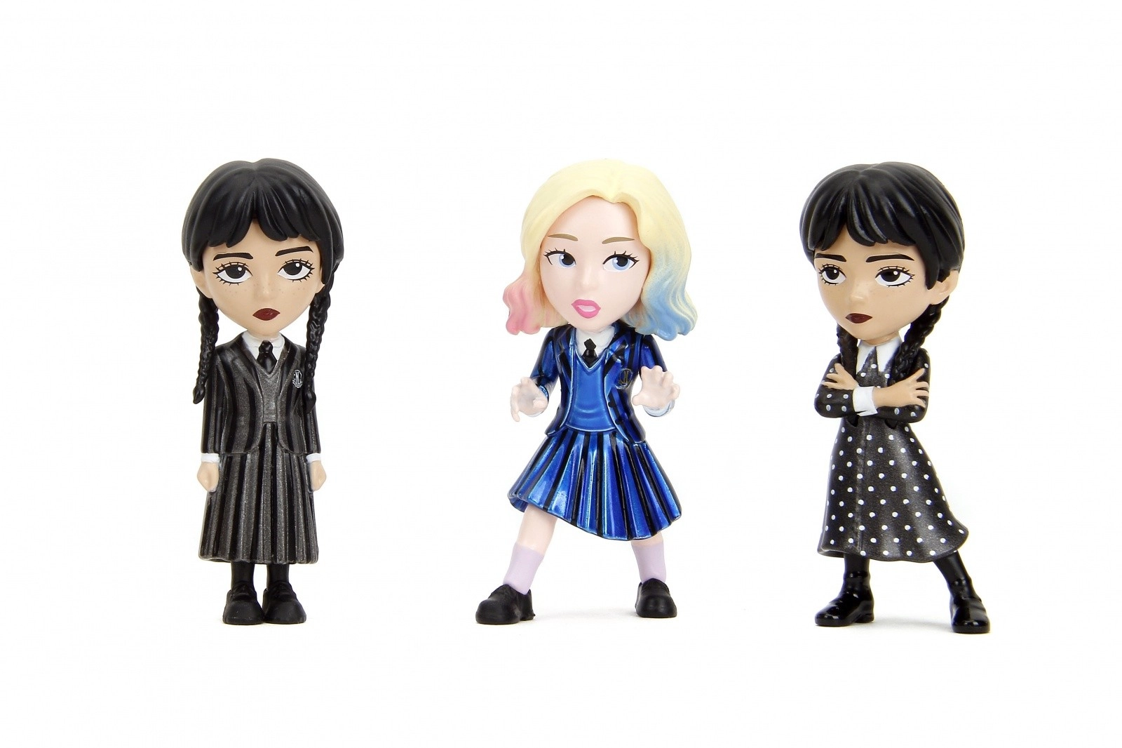 Uradno licencirane kovinske figurice Jada Toys prinašajo like iz fenomena Wednesday v kakovostni izvedbi z metalnimi barvami. Vrečka v obliki krste doda napetost in veselje ob razpakiranju – nikoli ne veste, katerega lika boste dobili.
