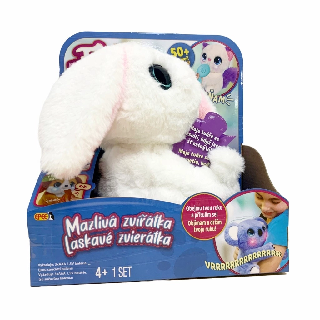Zajček Rozarka je idealen prijatelj za crkljanje in igro. Zahvaljujoč pametnim tipalom se odziva na dotike in interakcijo – zna se stisniti k tebi, objeti ročico ter izraziti veselje in potrebe s pomočjo svetlečih ličk in prisrčnih zvokov.