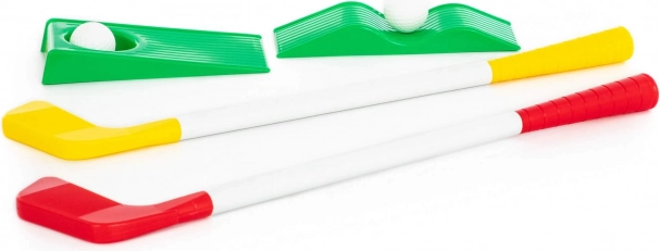 Otroški set vsebuje plastične palice z rdečo in rumeno glavo, ki so lahke in enostavne za upravljanje.