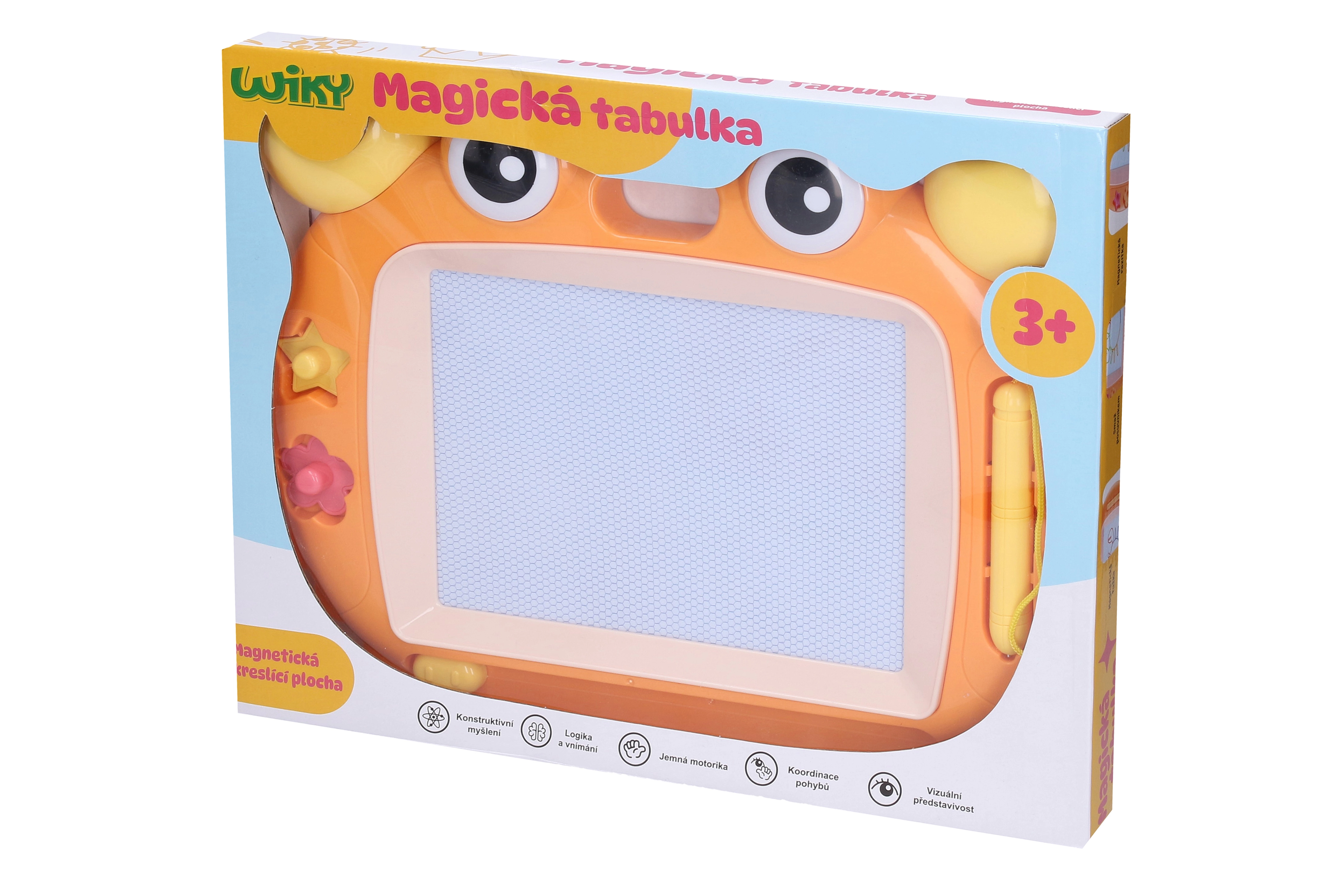 Podprite domišljijo in fino motoriko otrok z magično risalno tablico, ki omogoča risanje znova in znova. Zahvaljujoč magnetni površini in drsniku se slike z enim potegom izbrišejo, zato je tablica idealna za na pot in domov.