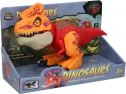 Ta rdeči dinozaver prinaša otrokom akcijsko zabavo s svetlobnimi in zvočnimi učinki. Z enostavnim pritiskom na gumb na spodnji strani repa dinozaver iztegne glavo in odpre gobec, s čimer zaneti prazgodivinsko pustolovščino polno domišljije. Idealna igrača za otroke, ki obožujejo dinozavre in interaktivne elemente.