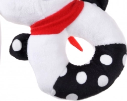 Ta mehka kontrastna igrača združuje funkcijo ropotuljice, piskalca in prve ljubkovalne igrače. Okrogla, enostavno oprijemljiva oblika z odprtino na sredini, izbočeno glavico in dolgimi ušeski pomaga uriti fino motoriko in koordinacijo roka–oko. Kontrastni črno-beli motivi so za dojenčke odlično vidni in pritegnejo njihovo pozornost.