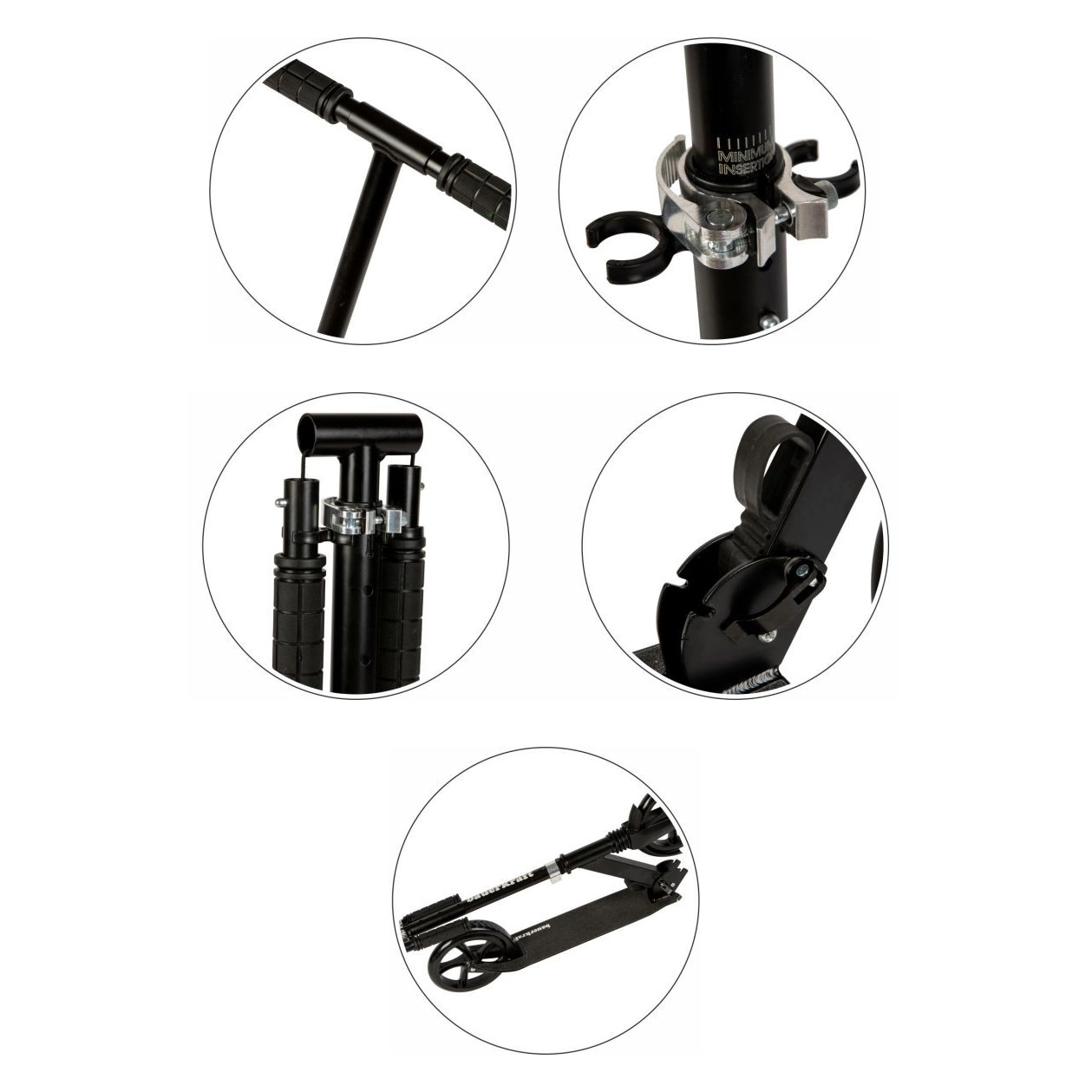 Praktičen zložljiv mehanizem v nekaj sekundah spremeni skiro v kompaktno velikost. Idealno za v šolo, javni prevoz in na počitnice.