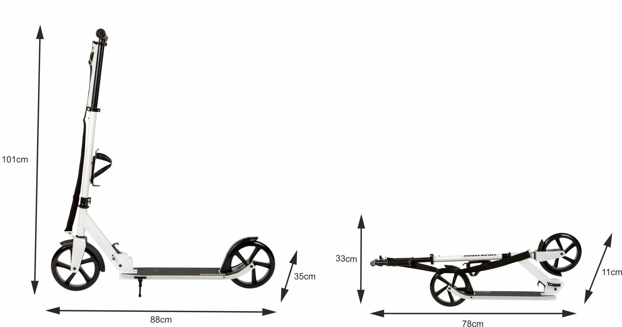 Ta mestni skiro združuje udobje, varnost in slog za vsakodnevno vožnjo v službo ali šolo ter zabavne izlete. Zahvaljujoč velikim kolesom 200 mm z ležaji ABEC-7 gladko drsi po asfaltu, pločnikih in kolesarskih stezah, aluminijast okvir pa zagotavlja nizko težo in visoko vzdržljivost. Zložljiv mehanizem omogoča enostavno prenašanje in shranjevanje doma, v šoli ali v prtljažniku avtomobila.