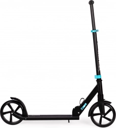 Ta zložljiv skiro iz lahkega aluminija je zasnovan za gladko in udobno vožnjo po asfaltu, kolesarskih stezah in pločnikih. Sprednje vzmetno vzmetenje blaži vibracije, velika 200-mm PU kolesa z ležaji ABEC-7 pa zagotavljajo gladko in stabilno kotaljenje. Zadnji blatnik služi kot zavora za zanesljivo ustavljanje in ščiti pred škropljenjem vode.