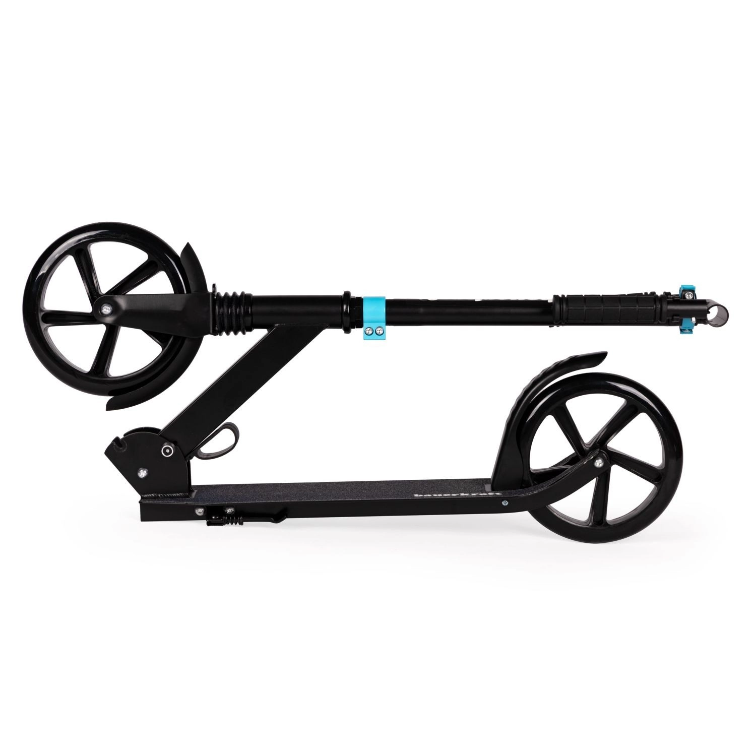 Kolesa premera 200 mm iz PU materiala s preciznimi ležaji ABEC-7 zagotavljajo stabilnost, nizek kotalni upor in gladek doseg po mestnih površinah.
