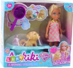 Ljubek komplet za majhne skrbnike: punčka, kužek in kopalni dodatki. Največja atrakcija je interaktivni kužek, kateremu pod vplivom vode izginjajo rjave lise. Del kompleta sta banjica z »prho« in kozmetični pripomočki za realistično igro nege ter razvoj fine motorike in odgovornosti.
