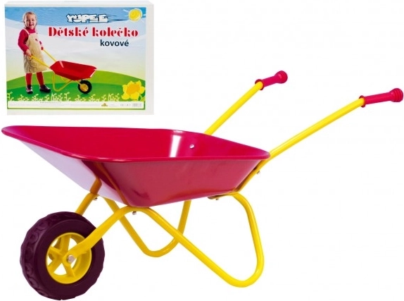 Robusten otroški samokolniček Yupee za male vrtnarje je idealen za peskovnik in vrt. Ima trdno kovinsko konstrukcijo, plastične ročaje za udoben oprijem in zaobljene robove korita za varnejšo igro.