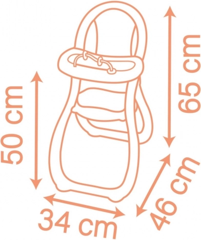 Stolček je izdelan iz kakovostne, lahke plastike, zato ga je enostavno prenašati in hitro čistiti – dovolj je, da površino obrišete z vlažno krpo. Posebna stabilna konstrukcija zagotavlja varno igro. Primerno za punčke do 42 cm (punčka ni del pakiranja).