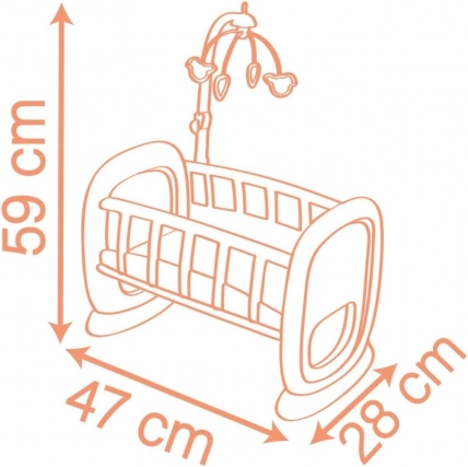 Stilska otroška zibelka za punčke Baby Nurse prinaša mirno uspavanje in udoben spanec v enem. Nežno guganje pomirja, ročno vrteči se vrtiljak nad posteljico pa podpira pomirjujoče rituale pred spanjem. Odlična za razvoj empatije in negovalnih veščin med igro.
