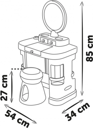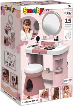 Stilska otroška toaletna mizica My Beauty Dressing Table prinaša svet domišljije in lepote naravnost v otroško sobo. Ponuja veliko preklopno ogledalo, praktične predale in pregradke ter bogat komplet 15 posnemovalnih kozmetičnih dodatkov za ustvarjalno igro frizerskega salona, manikire in ličenja. Zahvaljujoč čvrsti in trpežni konstrukciji je idealna za vsakodnevno igro in jo je mogoče zlahka spremeniti v namizno toaletko.