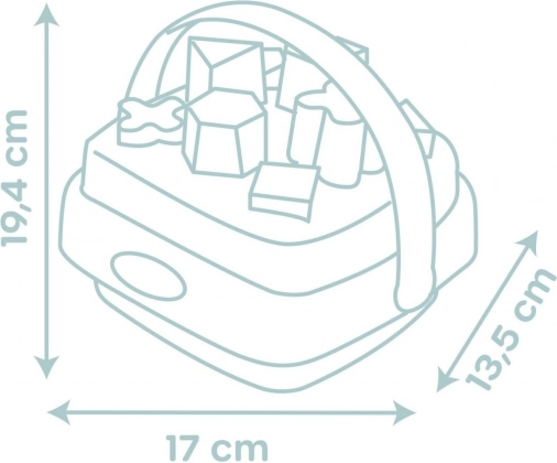 Ta koš za razvrščanje oblik Little Smoby je idealna prva izobraževalna igrača za malčke. Osem trdnih koščkov različnih oblik (npr. kvadrat, trikotnik, šestkotnik) otroke motivira k vstavljanju v pravilne odprtine ter k prosti igri z zlaganjem v stolpe. Zahvaljujoč ergonomskemu ročaju je koš lahek in enostavno prenosljiv.