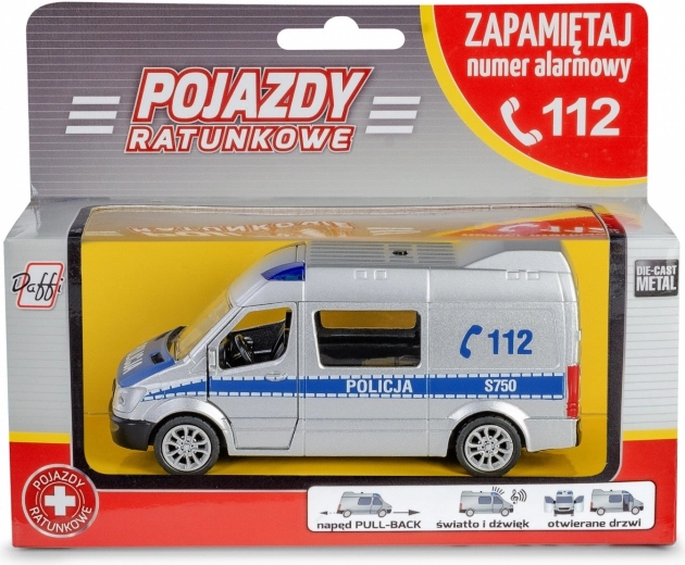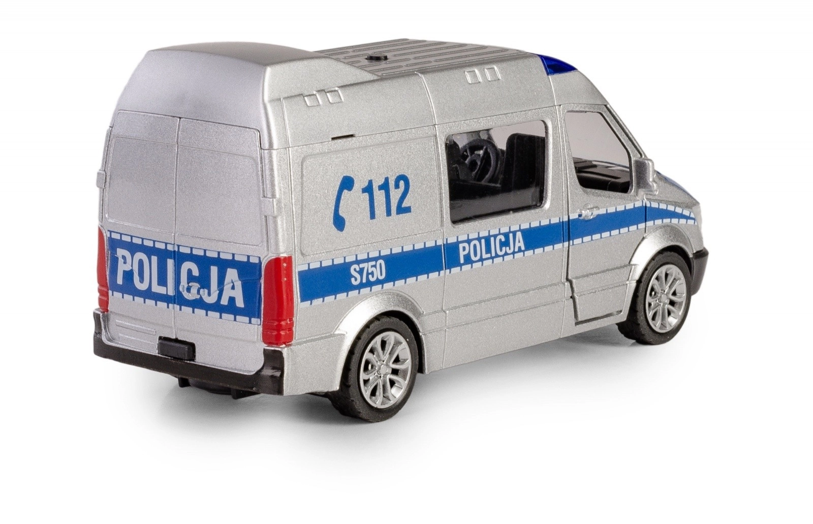 Ta podrobno izdelan model združuje kovinsko ohišje s plastičnimi elementi za trpežnost in dolgo življenjsko dobo. Zahvaljujoč pogonu pull-back se vozilo po navijanju in spustu samo zapelje, kar zagotavlja veliko zabave. Odpirajoča se vrata ter avtentični svetlobni in zvočni učinki prinašajo še bolj realistično igralno izkušnjo.
