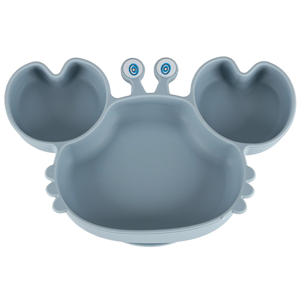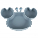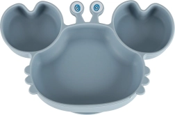 Krožnik v obliki raka in skleda trdno stojita zahvaljujoč priseskom, ki preprečujejo prevrnitev in drsenje po mizi – manj nereda in več miru pri obroku.