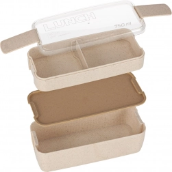 Praktična in stilska posoda za kosilo s prostornino 750 ml z modularno notranjostjo, pregradami in tesnim pokrovom s silikonskim tesnilom ter stranskimi sponkami. Idealna za službo, šolo in potovanja. Izdelana iz plastike brez BPA, primerna za pomivalni stroj in za segrevanje v mikrovalovni pečici (brez pokrova). Del paketa sta žlička in vilica za maksimalno udobje.