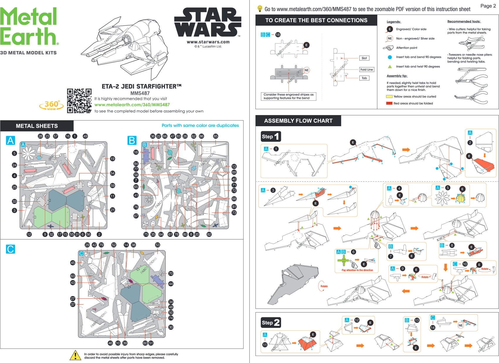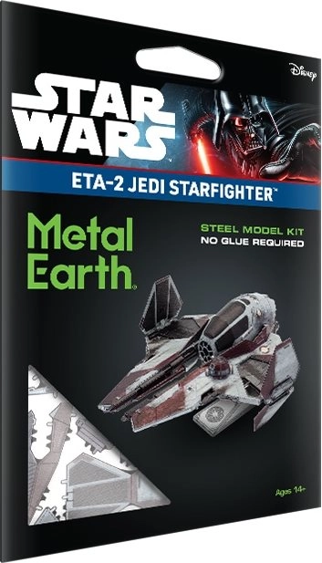 Odkrijte veselje natančne kovinske sestavljanke in zgradite legendarni lovec Eta‑2 Jedi Starfighter iz sveta STAR WARS. Set METAL EARTH prinaša ploščice iz nerjavnega jekla z drobnim laserskim graviranjem, ki ustvari realističen model z bogatimi detajli, vključno s paneliranjem kril in kokpita.