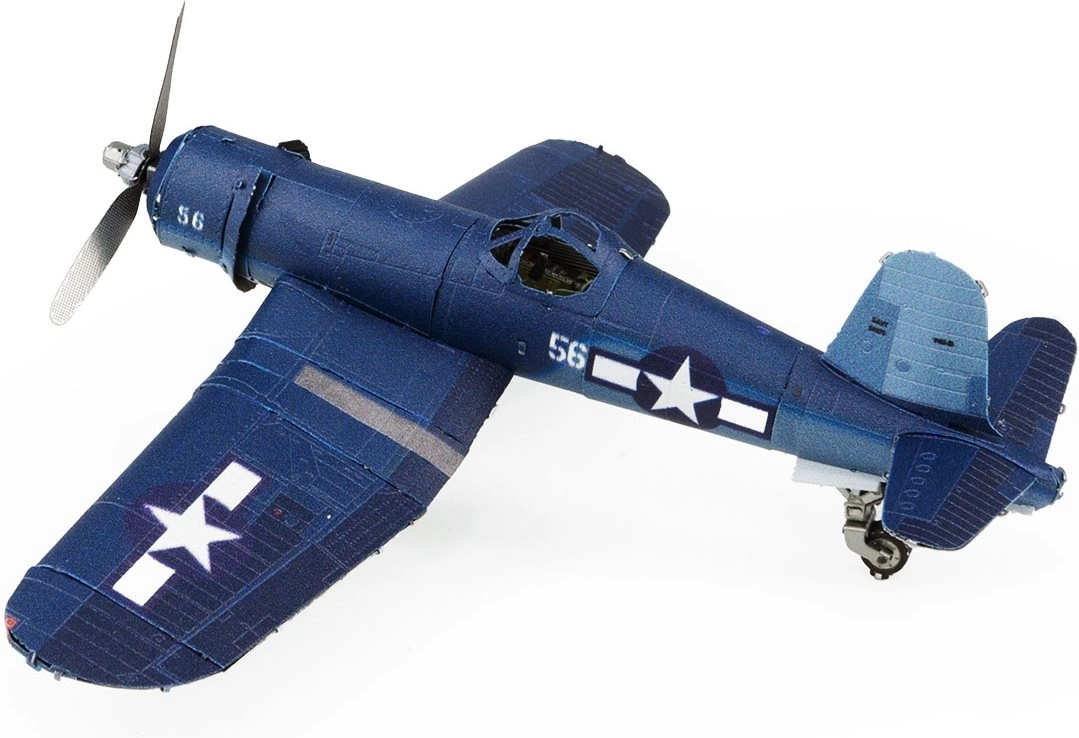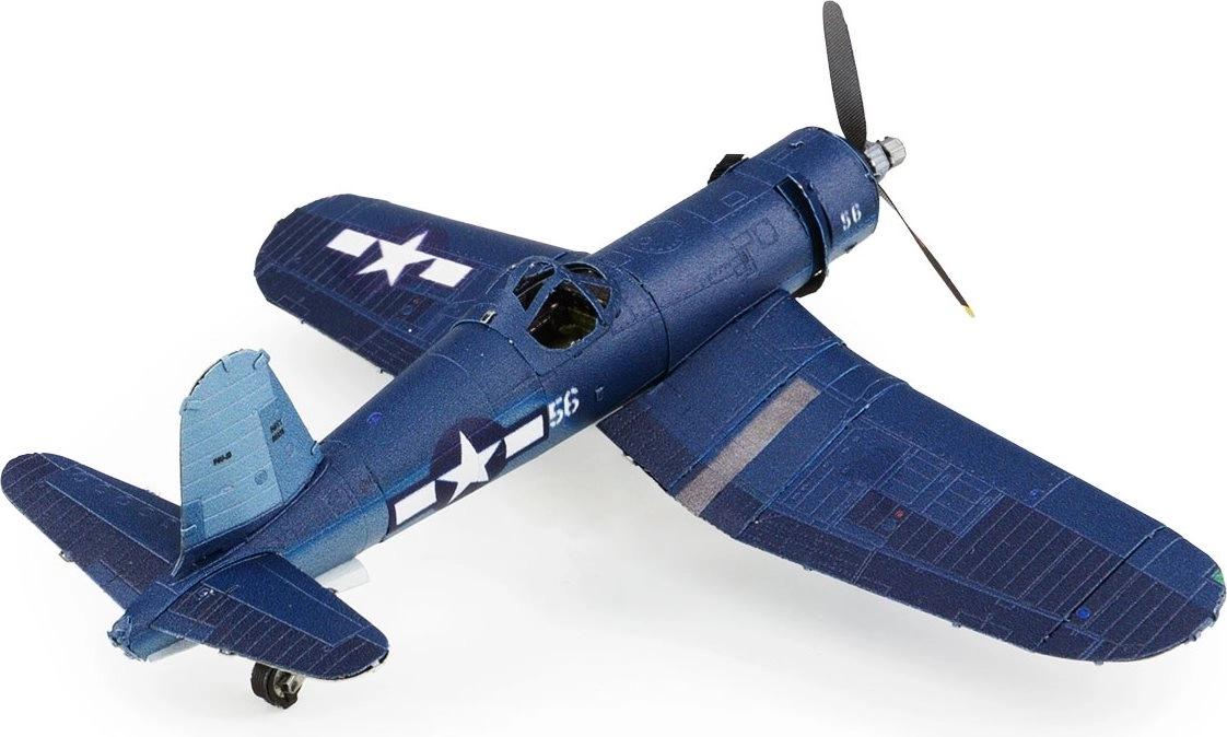 Odkrijte čar kovinskega modelarstva s kompletom METAL EARTH F4U Corsair. Iz tankih jeklenih ploščic boste s pomočjo natančnih zatičev in lasersko graviranih detajlov ustvarili miniaturno repliko legendarnega lovca iz druge svetovne vojne z realističnimi proporci in finim graviranim paneliranjem.