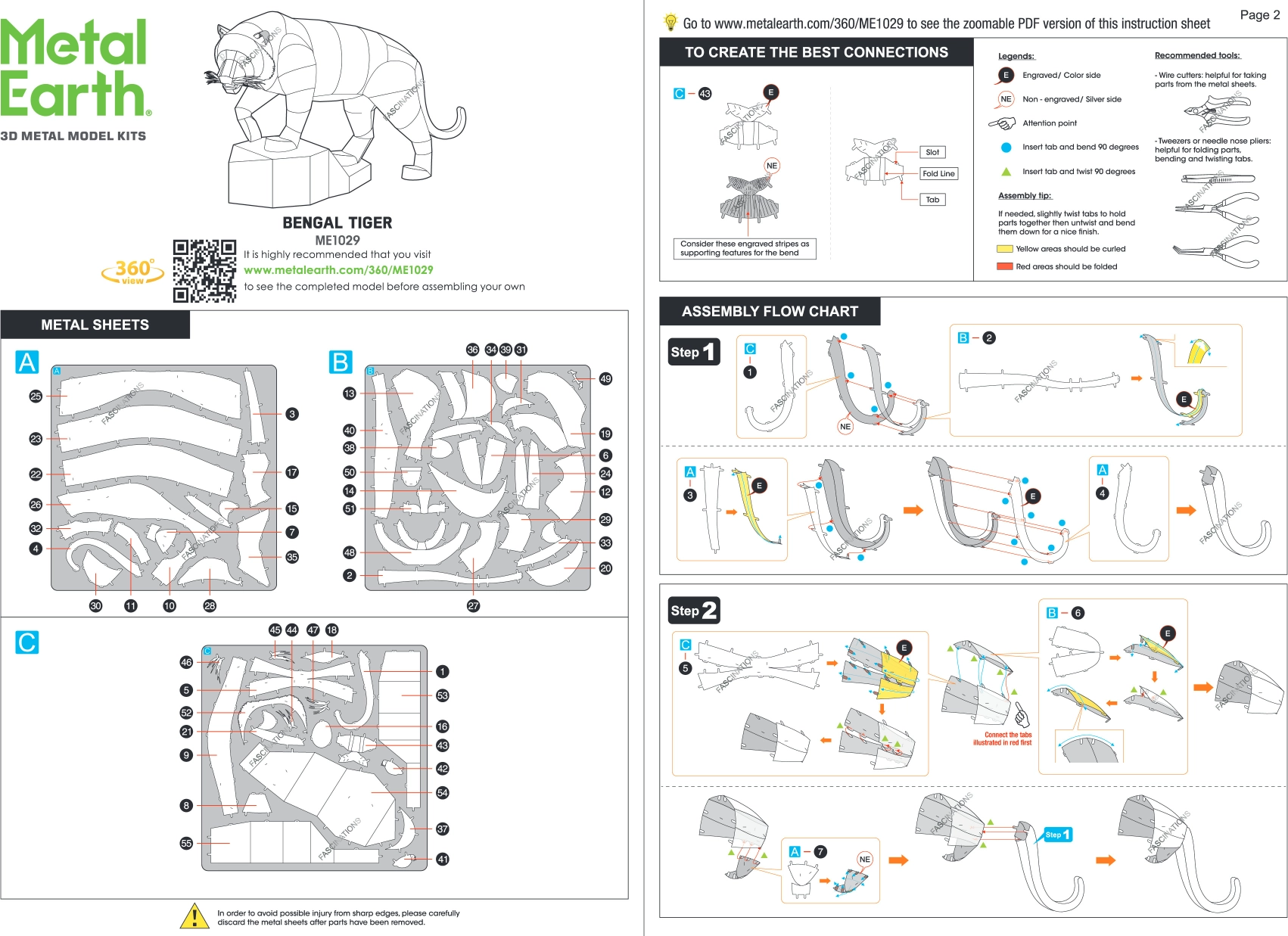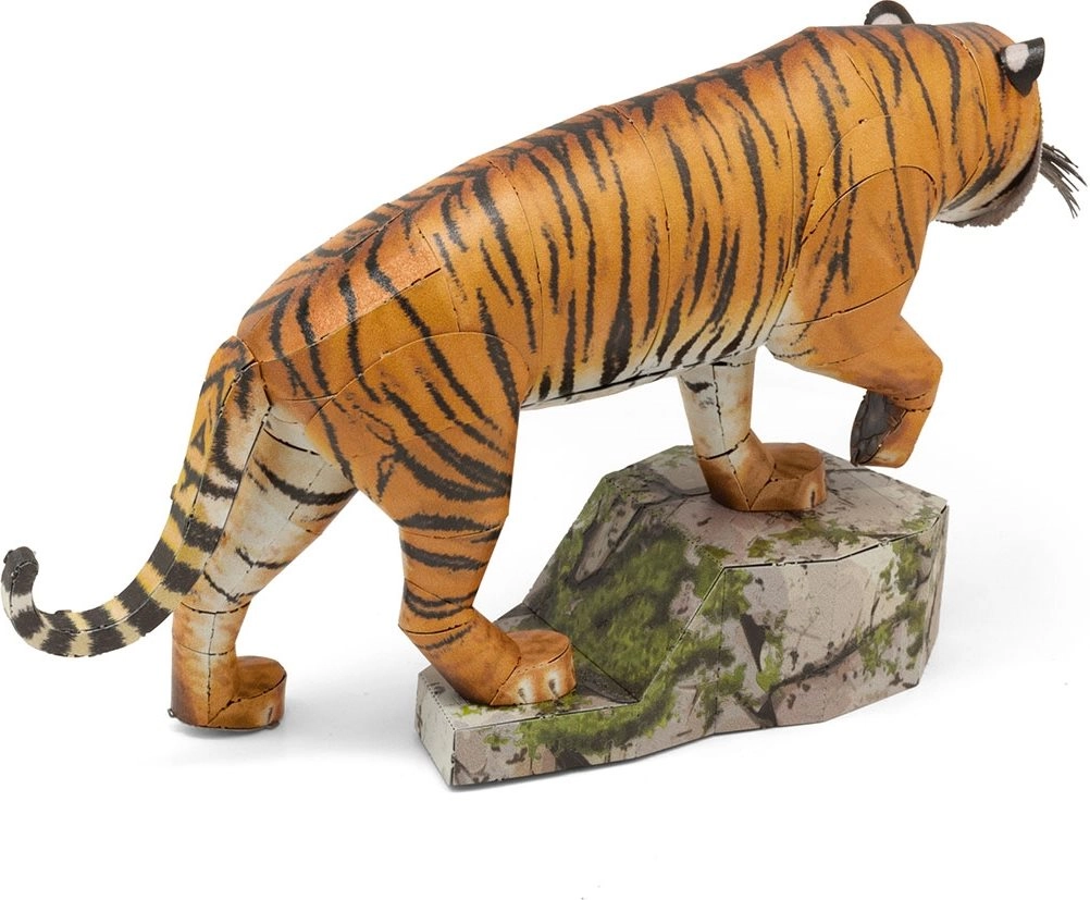 Odkrijte veselje natančnega modelarstva s kovinsko 3D sestavljanko bengalskega tigra. Dele preprosto iztisnete iz jeklenih ploščic in jih s pomočjo zaklepov povežete, dokler ne nastane realistična mojstrovina. Zaradi podrobnega laserskega graviranja izstopajo proge in mišičaste obline zveri.