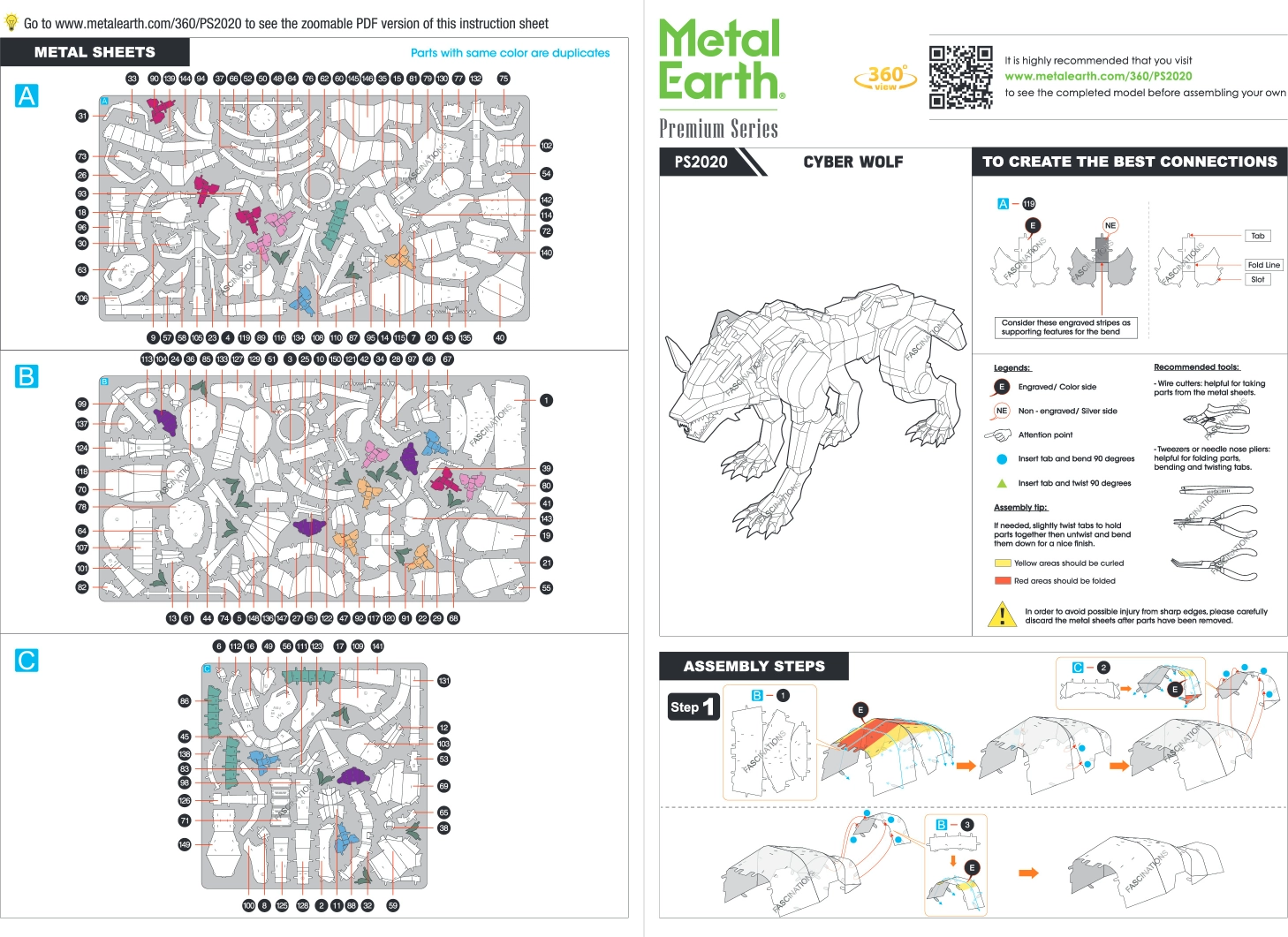 Sestava poteka brez lepila – deli se povezujejo s zatiči in jezički. Priporočamo majhne stranske klešče in ravne pincete za čisto ločevanje delčkov in natančne pregibe (orodje ni priloženo). Dimenzije sestavljenega modela približno 12,7 × 5,48 × 6,6 cm.