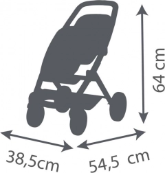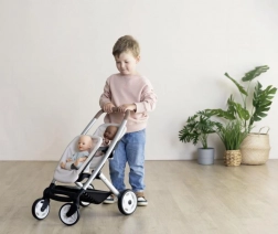 Voziček ponuja dva sedeža, pri čemer je sprednji opremljen z varnostnim pasom za stabilen položaj punčke. Prevleke iz robustnega sintetičnega blaga preprosto obrišete z vlažno gobico. Primerno za punčke do 42 cm. Dobava brez punčke.