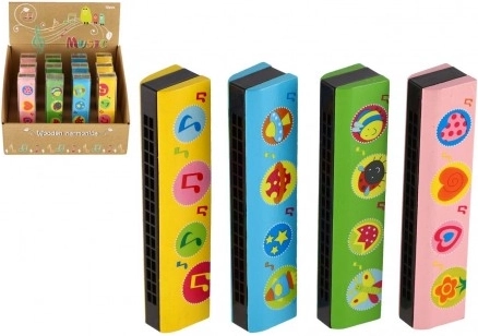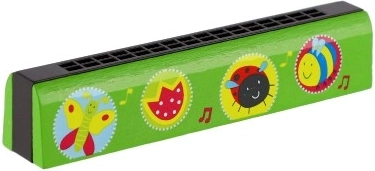 Ta otroška lesena harmonika je odličen začetek za vstop v svet glasbe. Zaradi čvrste lesene konstrukcije in veselih vzorcev otroke zlahka pritegne ter motivira k odkrivanju zvokov in melodij. Lahka in dobro oprijemljiva, idealna za male začetnike.