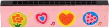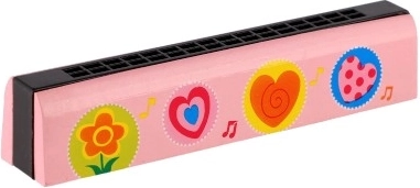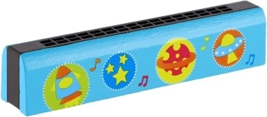 Harmonika je na voljo v več barvnih izvedbah z igrivimi motivi (srčki, živalice, vesolje, note), zato si bo vsak otrok našel svojo najljubšo. Kompaktne mere omogočajo enostavno prenašanje na potovanja, k babici ali v vrtec.