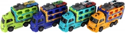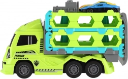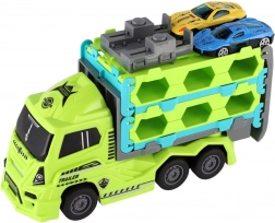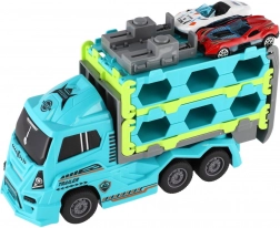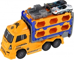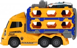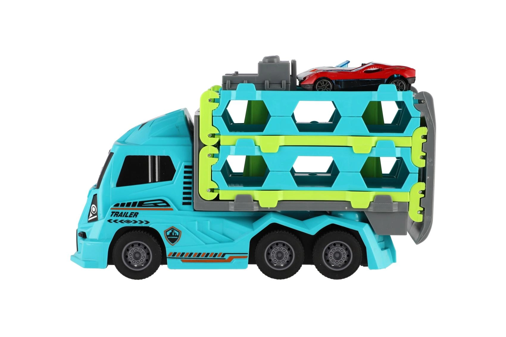 Ta trpežen plastičen kamion služi kot prevoznik za majhne dirkalne avtomobile in otrokom ponuja veliko akcijske zabave. Zahvaljujoč vztrajniku se po potisku sam zapelje, zato je idealen za dinamično igro na preprogi ali gladkih površinah.