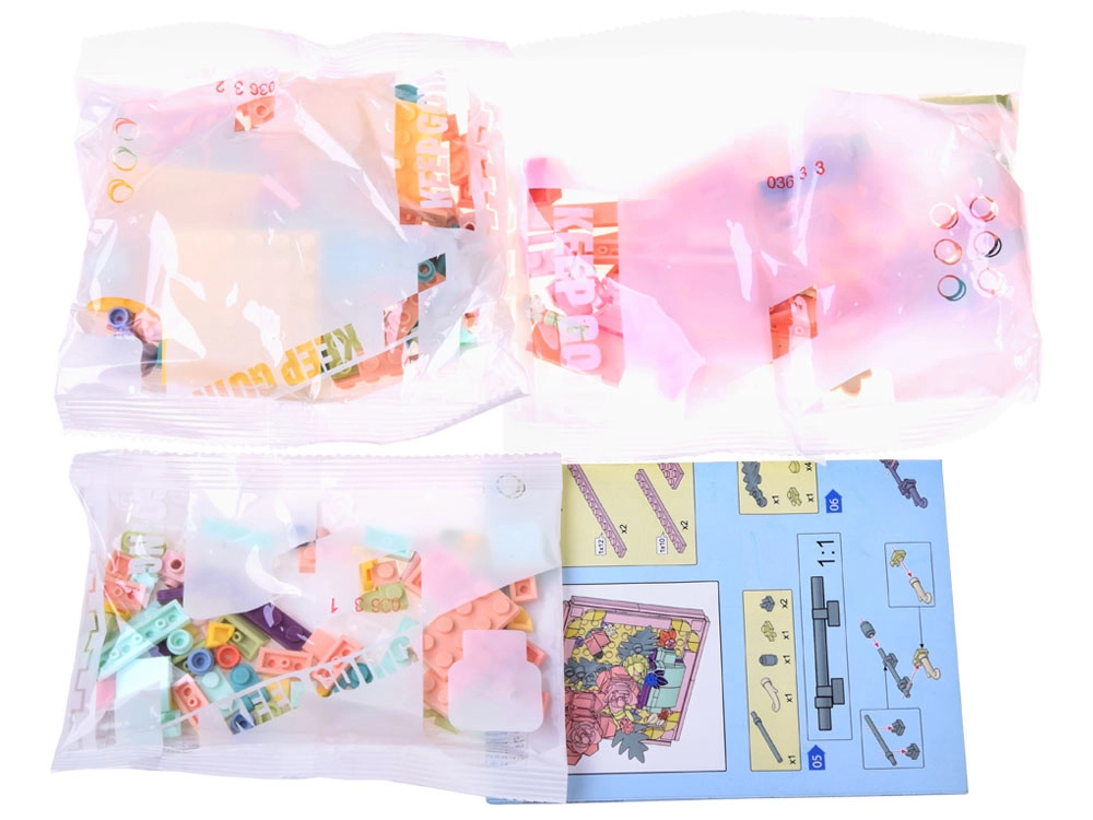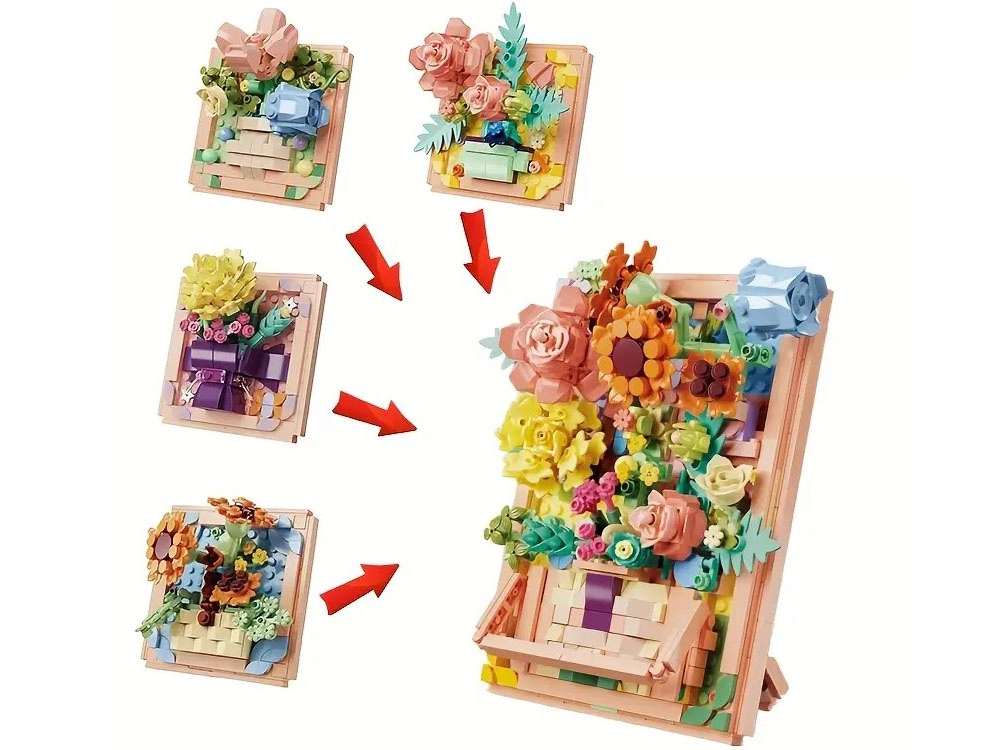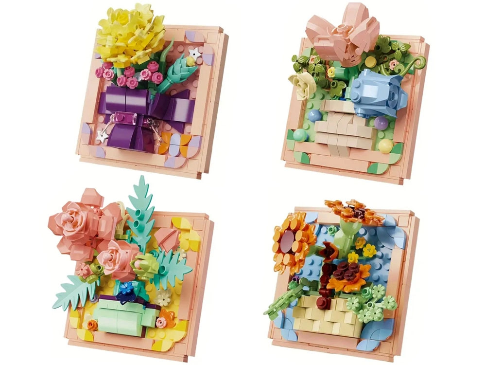 Na voljo so štirje motivi: Carnation (nagelj), Rose (vrtnica), Camellia (kamelija) in Sunflower (sončnica), vsak z drugačno barvno paleto in številom delov. Del paketa je slikovni priročnik, zahvaljujoč kateremu je gradnja enostavna in zabavna tudi za začetnike. Vse motive je mogoče po želji kombinirati v eno večjo 3D sliko.